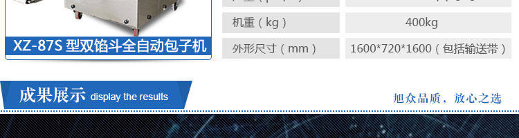XZ-87S型雙餡斗全自動包子機(jī),可生產(chǎn)各種肉包、肉菜包、菜包、小籠包、湯包、水晶包、圓饅頭、奶黃包、豆沙包、叉燒包、南瓜餅等幾十種包餡制品。適用于賓館、飯店、學(xué)校、機(jī)關(guān)企業(yè)食堂、饅頭或包子加工廠、早餐工程店及速凍食品廠等單位??蓾M足不同客戶群體。免費(fèi)提供工藝技術(shù)。免費(fèi)上門培訓(xùn)指導(dǎo)安裝。
