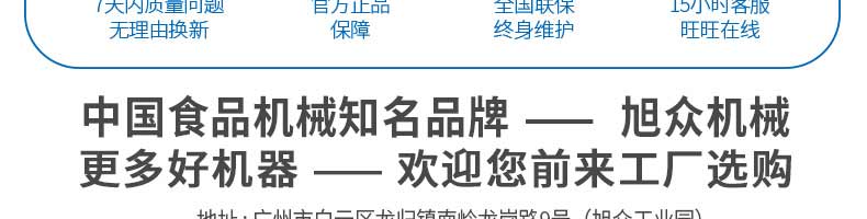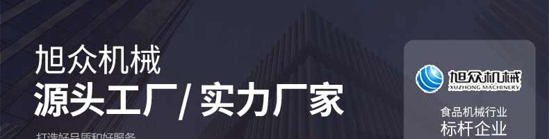 廣州旭眾食品機械有限公司是一家集科研開發(fā),生產(chǎn)設計,營銷服務為一體的現(xiàn)代化生產(chǎn)企業(yè)。現(xiàn)代化生產(chǎn)車間,精湛制造技術,所產(chǎn)機械歷經(jīng)市場重重考驗,不斷贏得海內(nèi)外客戶的贊譽。
