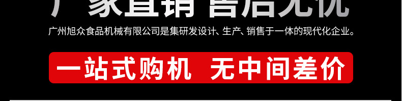 廣州旭眾食品機(jī)械有限公司是一家集科研開發(fā),生產(chǎn)設(shè)計(jì),營銷服務(wù)為一體的現(xiàn)代化生產(chǎn)企業(yè)。現(xiàn)代化生產(chǎn)車間,精湛制造技術(shù),所產(chǎn)機(jī)械歷經(jīng)市場重重考驗(yàn),不斷贏得海內(nèi)外客戶的贊譽(yù)。