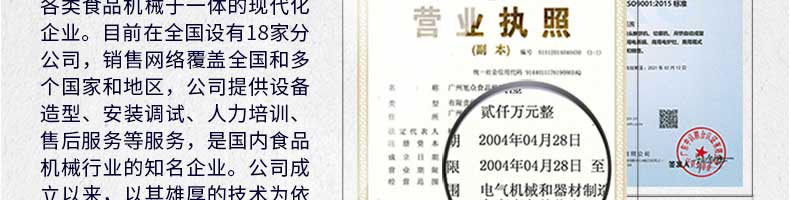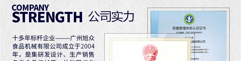 廣州旭眾食品機(jī)械有限公司是一家集科研開發(fā),生產(chǎn)設(shè)計(jì),營銷服務(wù)為一體的現(xiàn)代化生產(chǎn)企業(yè)。現(xiàn)代化生產(chǎn)車間,精湛制造技術(shù),所產(chǎn)機(jī)械歷經(jīng)市場重重考驗(yàn),不斷贏得海內(nèi)外客戶的贊譽(yù)。