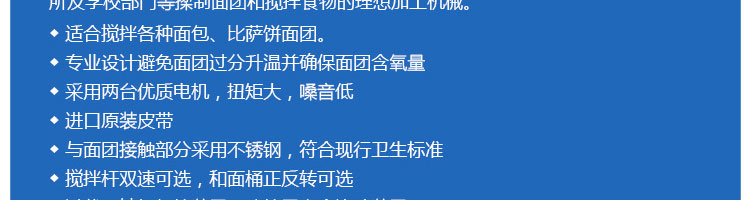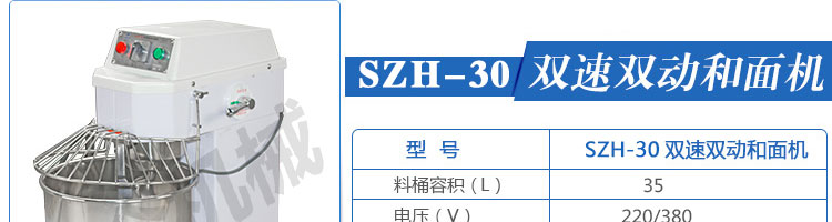 SZH-30型雙速雙動和面機,本機適合攪拌各種面包、包子、饅頭、湯圓、披薩餅面團,專業(yè)設計避免面團過分升溫并確保面團含氧量。過載、缺相保護裝置,防護罩安全連動裝置。