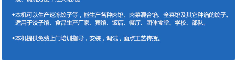JGB-180餃子機,先進的自動餃子生產(chǎn)設(shè)備,包括主動壓皮部分、自動供餡部分、自動包合部分、自動成品輸送部分,并且只要更換模具,就可制鍋貼等食品。適合食品速凍廠、飯店、廠礦學(xué)校食堂等制作包餡面制品單位使用。