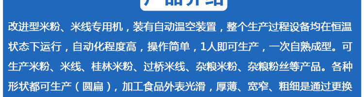 SZ-60多功能米粉機,生產多樣性可生產米粉、米線、粉絲、粉條、、年糕、玉米面條、各種雜糧粉絲、各種面條、雜糧面條、彩色面條以及以紅薯、玉米、大豆、蠶豆等制成淀粉為原料的等多種食品而且每種食品厚薄、粗細等規(guī)格可根據需要任意調整。