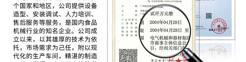 廣州旭眾食品機械有限公司是一家集科研開發(fā),生產(chǎn)設(shè)計,營銷服務(wù)為一體的現(xiàn)代化生產(chǎn)企業(yè)?,F(xiàn)代化生產(chǎn)車間,精湛制造技術(shù),所產(chǎn)機械歷經(jīng)市場重重考驗,不斷贏得海內(nèi)外客戶的贊譽。