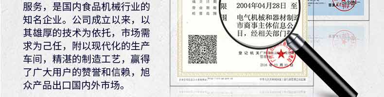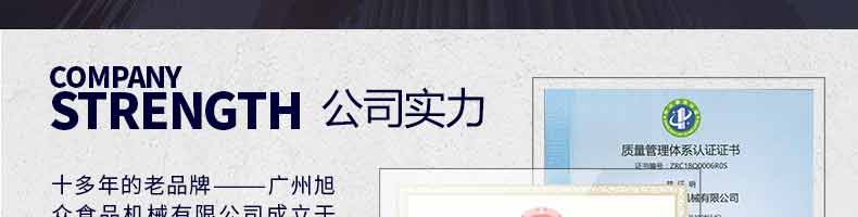 廣州旭眾食品機(jī)械有限公司是一家集科研開發(fā),生產(chǎn)設(shè)計(jì),營銷服務(wù)為一體的現(xiàn)代化生產(chǎn)企業(yè)。現(xiàn)代化生產(chǎn)車間,精湛制造技術(shù),所產(chǎn)機(jī)械歷經(jīng)市場重重考驗(yàn),不斷贏得海內(nèi)外客戶的贊譽(yù)。